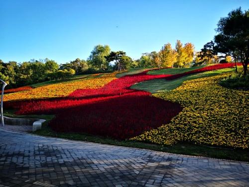 早上從延慶出發(fā),赴北京園博園。北京園博園園區(qū)布局為“一軸、兩點(diǎn)、五園”,“一軸”即園博軸,是貫穿主展區(qū)的景觀軸線。“兩點(diǎn)”即永定塔和錦繡谷。永定塔為遼金風(fēng)格的仿古塔,高69.7米,是園博園的標(biāo)志性建筑;錦繡谷是將一個(gè)20多公頃的建筑垃圾填埋坑打造成了花團(tuán)錦簇的下沉式花谷。“五園”即傳統(tǒng)展園、現(xiàn)代展園、創(chuàng)意展園、國(guó)際展園和濕地展園,共有展園69個(gè)。