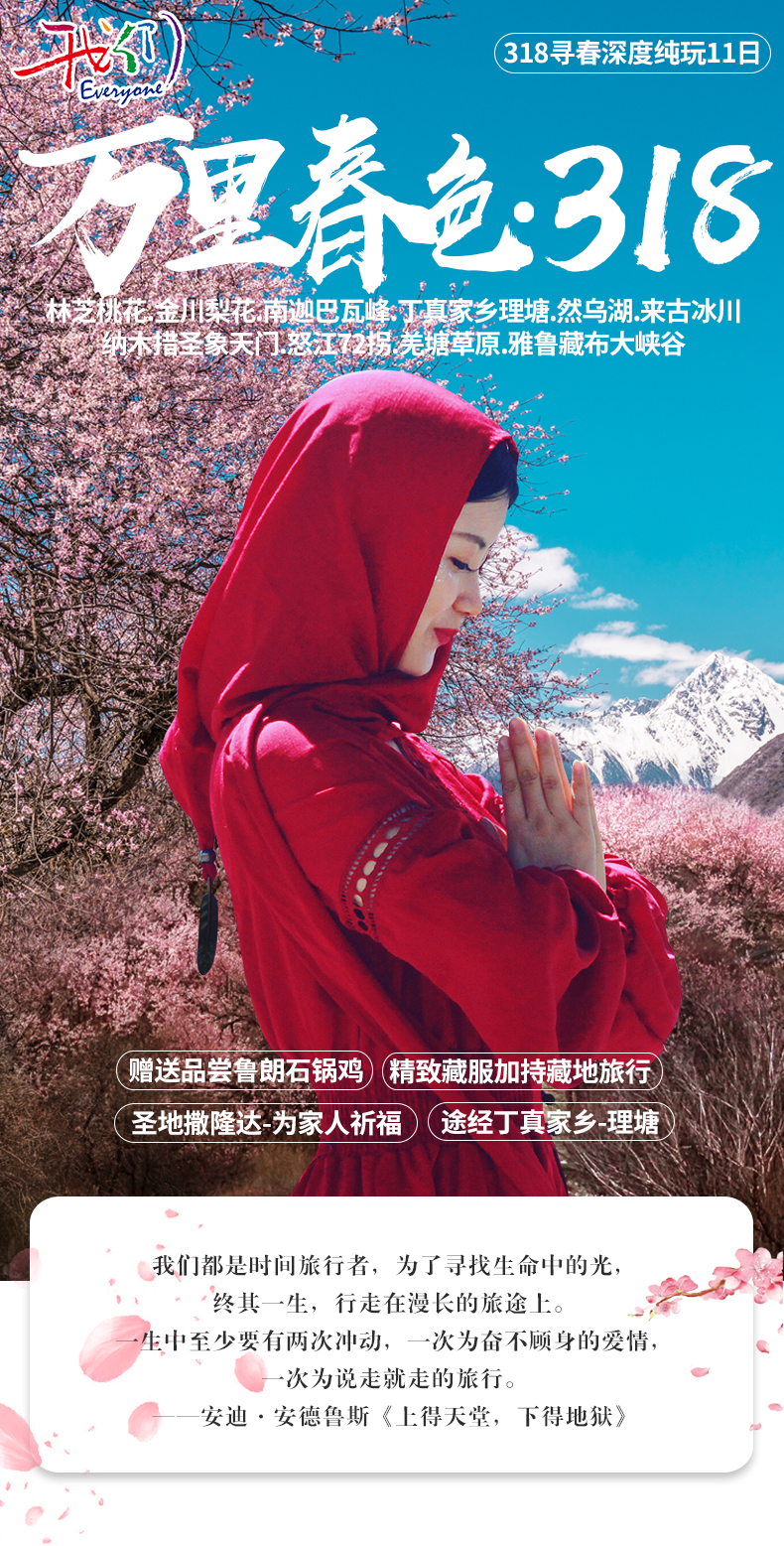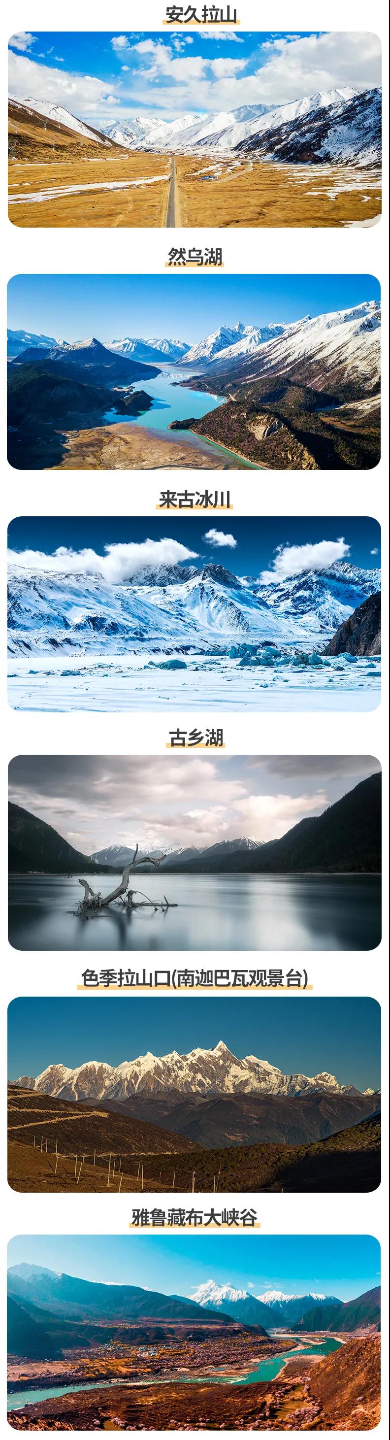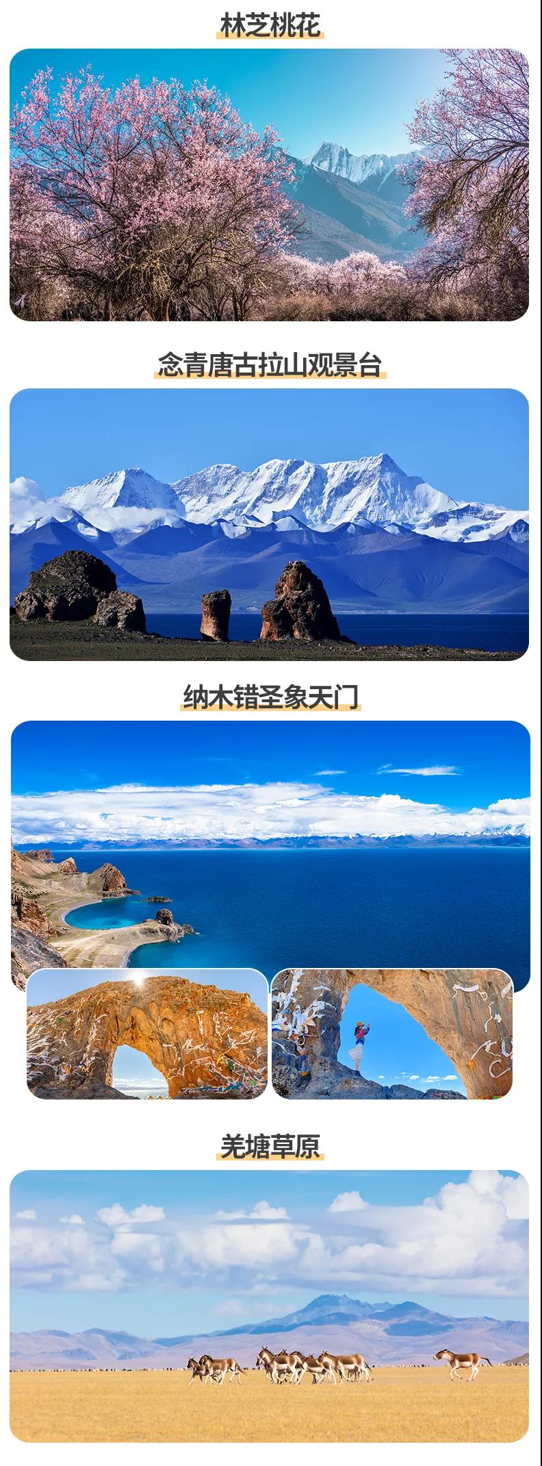 林芝桃花+金川梨花+南迦巴瓦峰+理塘+然烏湖+來古冰川+納木錯(cuò)圣象天門+怒江72拐+羌塘草原+雅魯藏布大峽谷