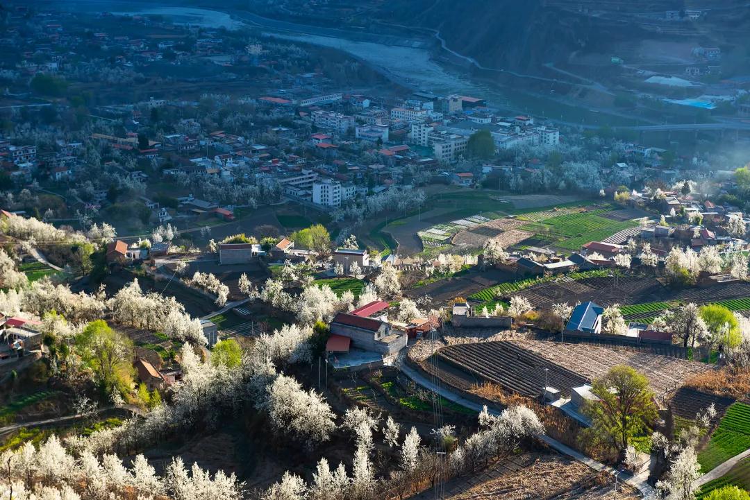 我們的團(tuán)期是金川最好的時(shí)節(jié),萬物復(fù)蘇的初春三月,正值金川成千上萬棵梨樹花期,雪白色的梨花競相開放,一片片、一層層的鋪散開來,漫山遍野的白色花海中夾雜零星新綠。沿著美人谷高原萬畝雪梨花盛開的壯景,登上金川著名景點(diǎn)——神仙包,將這鋪滿整個(gè)世界的純白花海和繚繞其間的青霧盡收眼底。空氣中氤氳著梨花清香,眼是天堂,身亦是天堂。