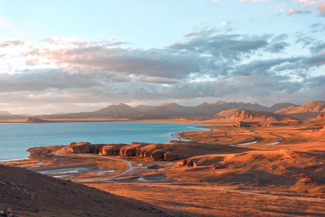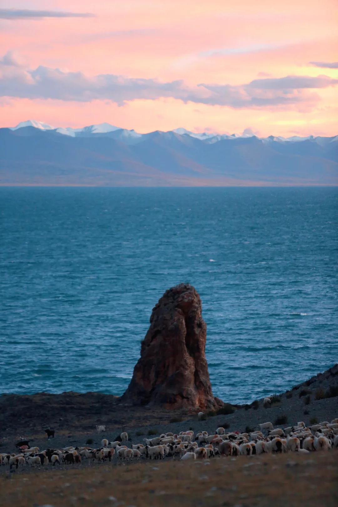 想看日出的朋友們今天就得起個(gè)早了哦~如果說納木措的日落是絢爛的,那它的日出就是寧靜而壯觀的。頭頂泛著魚肚白,然后當(dāng)水天相接的地方閃現(xiàn)出第一縷光,金光便開始爭相恐后地從深淵中躍出來,打破這太過沉默的晨,直到這輪旭日完全沖破云層,晨曦播撒在納木措的湖面上、山坡上、草地上,柔和的光暈照亮了整個(gè)大地。見證靜謐如何生出熱鬧,見證黑夜如何誕出光明,除了壯觀,別無他言。