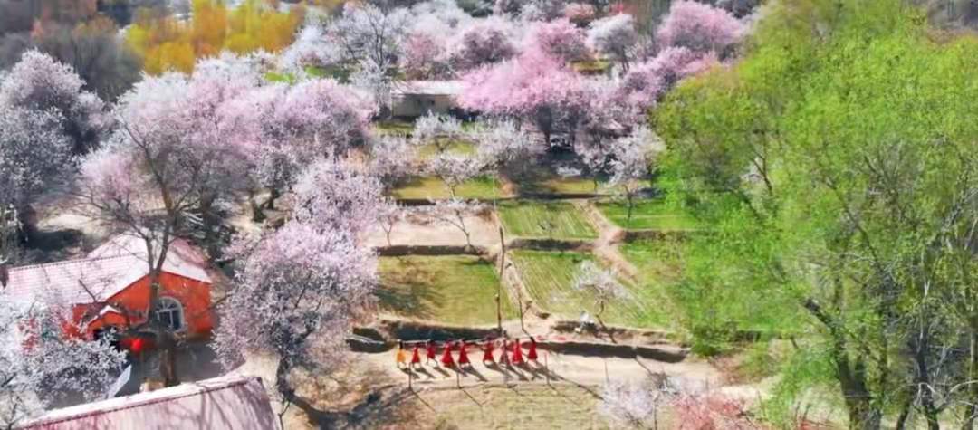五個(gè)月的漫漫長(zhǎng)冬過(guò)后帕米爾高原的雪融化了,冰川下的杏花開(kāi)了……