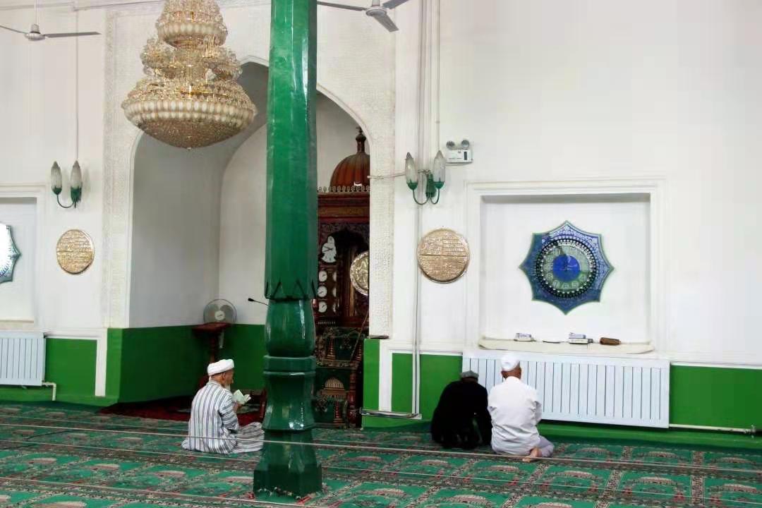 (艾提尕爾清真寺內(nèi)禱告的教徒)