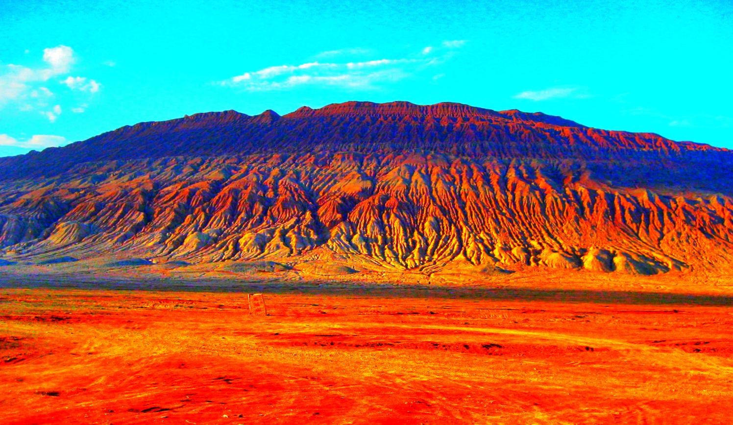 后乘車前往吐魯番【火焰山】含門票游覽時(shí)間約 40 分鐘, 火焰山 是由造山運(yùn)動和長期的風(fēng)蝕雨淋沖刷山體形成了大大小小的道道溝壑。火 焰山上寸草不生,陽光下褐紅色的山體熱浪升騰,恰似烈焰燃燒。年降雨 16.6 毫米,蒸發(fā) 3000 毫米,夏季地表平均溫度 70℃,最高可達(dá) 89℃,景區(qū)所在地吐魯番在國內(nèi)被稱之為“最低、最干、最熱、最甜”的地方,而 火焰山是中國最熱的地方。