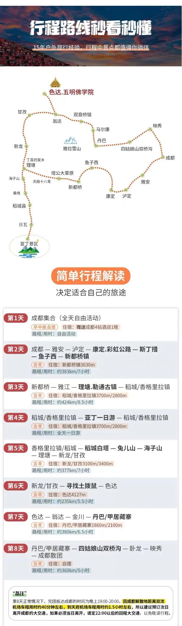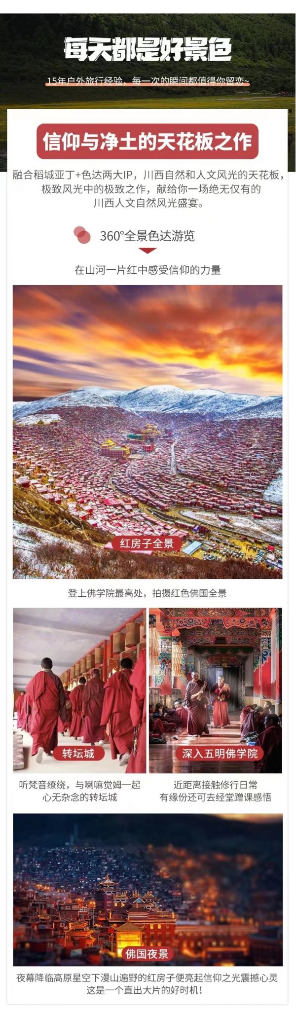 (10)行程中不只色達(dá)一個(gè)景點(diǎn),還有更美好的景點(diǎn)等待大家,預(yù)祝大家旅途愉快!