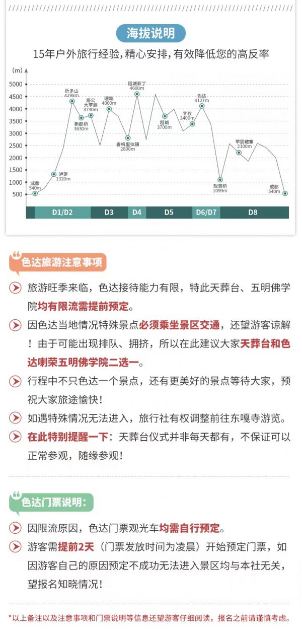 (8)旅游旺季來(lái)臨,色達(dá)接待能力有限,特此天葬臺(tái)、五明佛學(xué)院均有限流需提前預(yù)定。