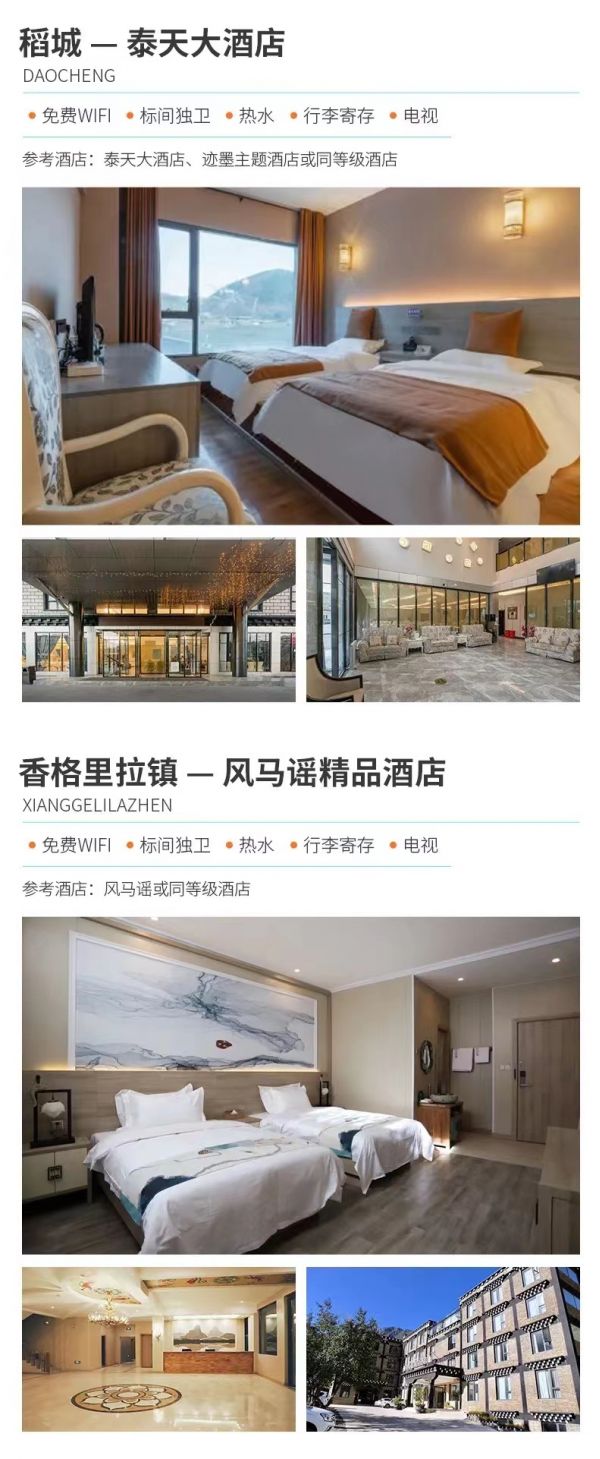 溫馨提示:(1)根據(jù)實(shí)際情況,稻城和香格里拉鎮(zhèn)酒店安排其一入住。
