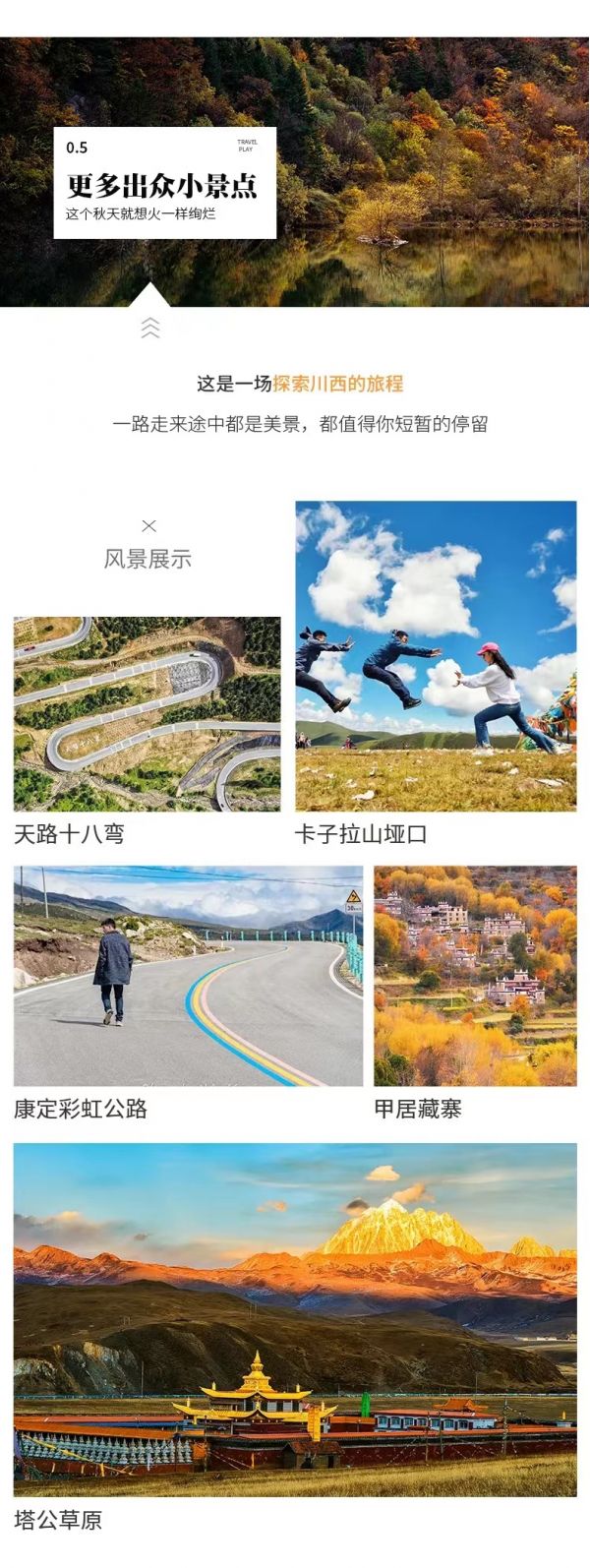 住宿:自理(可代訂)說明”早餐后酒店集合出發(fā),前往紅海子,沿著公路下來(lái)可以看到一個(gè)紅海子的觀景臺(tái)這里能看到景區(qū)的全景如果想更加靠近雪山。我們順著公路往下走,就可以看到一條最美的網(wǎng)紅機(jī)場(chǎng)路-康定彩虹公路。