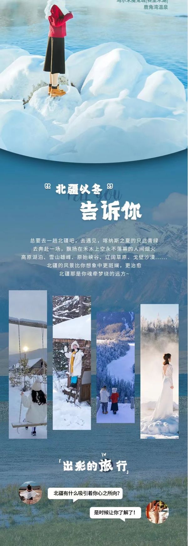 【布爾津】,今天我們有幸走一下S21阿烏高速,新公路比經(jīng)行G217線縮短258公里、G216線縮短193公里,成為烏魯木齊市連接阿勒泰地區(qū)的一條方便、快捷的高速公路通道。途觀烏倫古湖,冬季的新疆烏倫古湖銀裝素裹,是四季之中最壯觀、最豪邁、最富塞北風(fēng)情的季節(jié)。適時(shí)離開前往布爾津入住酒店。