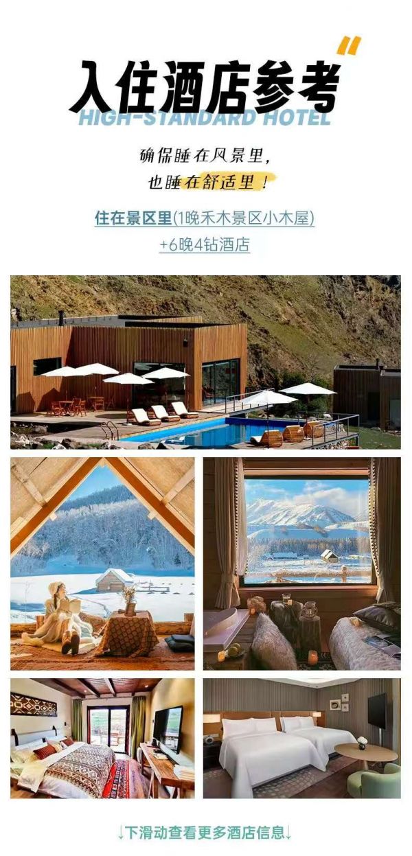 酒店含早餐(喀納斯、禾木不含早餐),其余正餐自理;