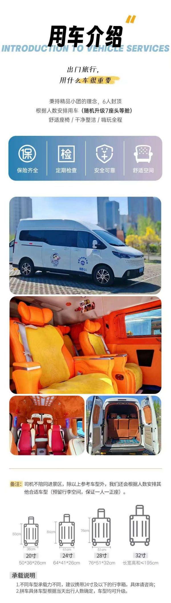 2-6人小團(tuán),豪華7座頭等艙(不保證用車車型),保證每人一正座;