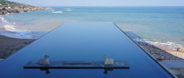 不同于其它觀光飯店或連鎖度假酒店的金碧輝煌或奢華建筑,青島涵碧樓是鄉(xiāng)林集團(tuán)再度攜手日月潭涵碧樓設(shè)計(jì)大師Kerry Hill,在中國打造的首家酒店,依山傍海,每間房間有100平米的大空間,延續(xù)日月潭涵碧樓建筑的極簡風(fēng)外,還保有并融合當(dāng)?shù)刈匀痪坝^,像是黃島區(qū)金沙灘的沙灘,巖盤全數(shù)保留,鮑魚池,變成飯店的特色規(guī)劃之一。