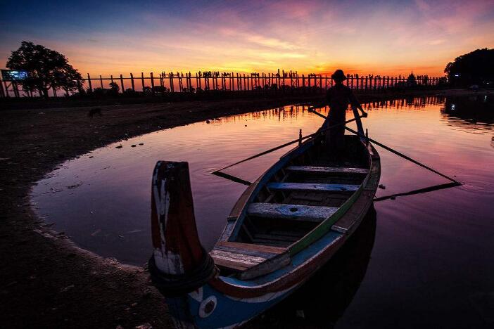 飯店內(nèi)早餐后,乘車前往曼德勒市西南郊的【烏本橋】,此橋全長2千余米,全部由柚木建成,又稱“情人橋”,至今已有2百多年的歷史;橋上當(dāng)?shù)匦腥撕图t衣僧侶悠閑往來,小販攤商兜售特產(chǎn),奶茶館掩映在古樹如傘的巨大樹冠之下,平和中又充滿生活的情趣。參觀在其面前前往橫跨大河的“情人橋”,全橋總長1200公尺,全部由柚木建成,又稱柚木橋。參觀緬甸特產(chǎn)【翡翠玉】。乘機(jī)前往黑河。抵達(dá)后,乘車前往艷麗湖。抵達(dá)湖邊的娘惹鎮(zhèn)后,換乘當(dāng)?shù)靥厣男〈巴ㄓ谒叺哪疚菥频辍H胱『螅猛聿停⑿蕾p當(dāng)?shù)亍?strong>民族歌舞表演】。