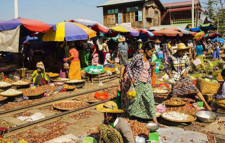 早餐后,參觀位于中國城的【觀音寺】,前往市中心的翁山市場,選購緬甸特產(chǎn)-翡翠,及各種當(dāng)?shù)靥厣止に嚻罚熬挼樘厣姆b面料。
