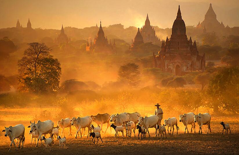 飯店內(nèi)早餐后,前往國內(nèi)機(jī)場,乘機(jī)飛蒲甘,大約1小時航程。古都蒲甘位于伊洛瓦底江畔,蒲甘佛塔群始建于十至十三世紀(jì)之間,非常具有藝術(shù)及考古價值。首先我們參觀蒲甘地區(qū)最古老的佛塔—【瑞喜貢塔】,之后參觀蒲甘最美的佛塔—【阿南達(dá)塔】,此塔在蒲甘眾多佛塔當(dāng)中色彩最豐富,建筑形制也最富于變化,塔內(nèi)四周供奉著四尊莊嚴(yán)祥和的佛主神像;接著參觀蒲甘最高的佛塔—【大冰瑜塔】,此塔有神廟之譽。下午參觀參觀蒲甘著名的手工藝品—【漆器】的制作,及精美的【柚木】雕刻品。傍晚登上靠近伊洛瓦底江邊的【日落塔】,欣賞色彩艷麗豐富的【蒲甘日落】美景。
