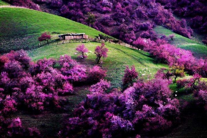 早餐后乘車前往參觀【吐爾根杏花溝】。(賞花時間根據(jù)當?shù)氐臍夂蚝吞鞖鈼l件決定,敬請諒解)每年四月份起,伊犁河谷開始進入一個美麗浪漫的季節(jié),山上、草原上的果花、草花次第盛開,美不勝收!最先盛開的就是野杏花。那個季節(jié)野杏花綿延十幾公里,粉紅的、雪白的杏花把一個個山頭妝扮起來,牛羊似珍珠灑落在花林間、草坡上。最震撼是這種自然、原生態(tài)的壯美,一個花海的世界、一個迷人的仙境!抵達新源用晚餐,晚餐后入住酒店。
