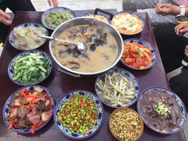 農(nóng)家餐:住哪里吃哪里,每天的菜根據(jù)阿姨的口味燒,每家不統(tǒng)一。