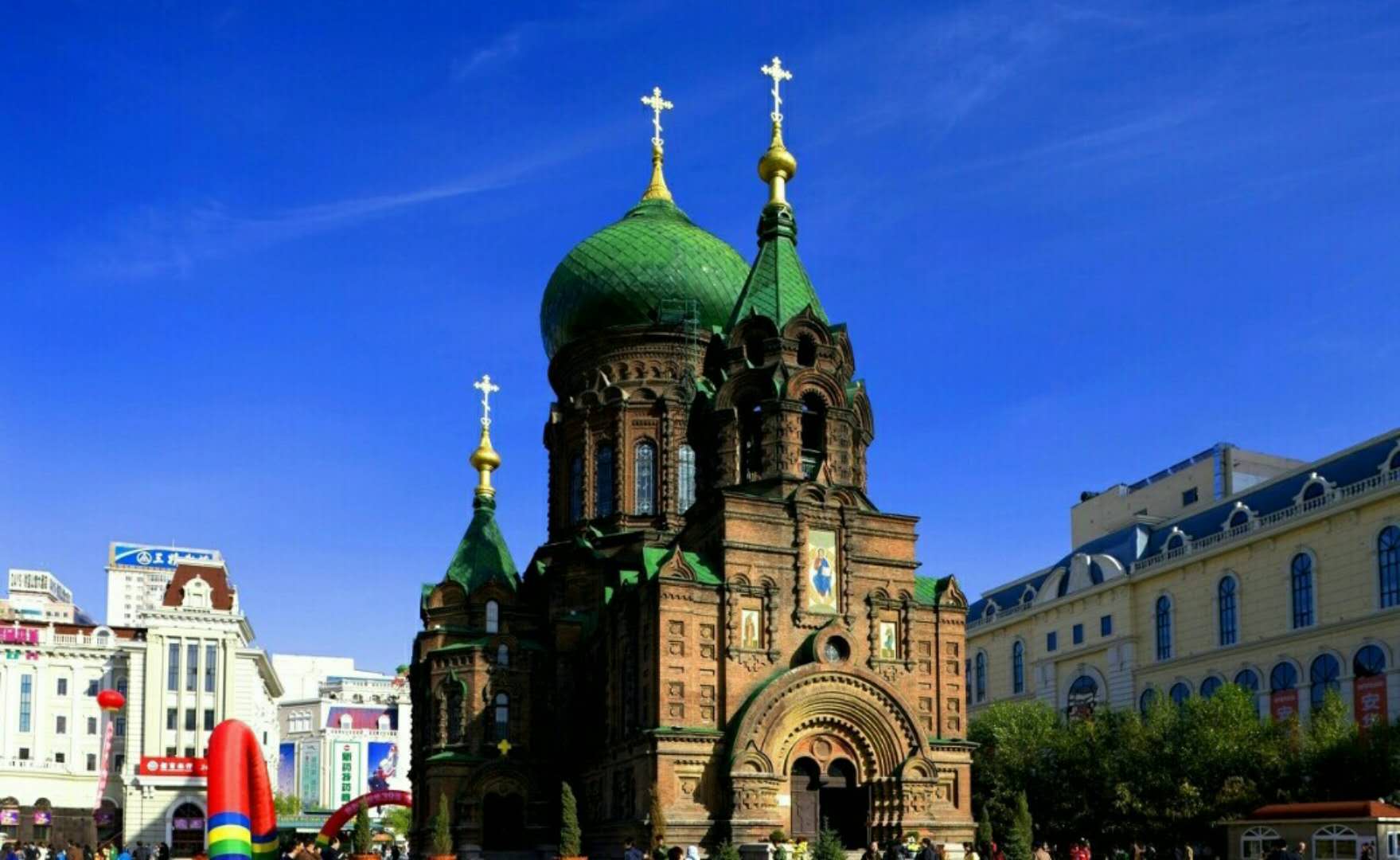 早抵達(dá)孫家,早餐后游覽沿江帶狀開放式公園【斯大林公園】(游覽不少于30分鐘),漫步松花江畔,觀看哈爾濱標(biāo)志性建筑【防洪紀(jì)念塔】(游覽不少于20分鐘),參觀遠(yuǎn)東最大的東正教堂【圣索菲亞大教堂外景及廣場(chǎng)】(游覽不少于20分鐘),乘車赴馳名中外的【太陽(yáng)島公園】(游覽不少于2小時(shí),景區(qū)內(nèi)電瓶車自理20元/人):太陽(yáng)石、太陽(yáng)山、太陽(yáng)湖、水閣云天等;可自費(fèi)參觀世界上最大的室內(nèi)冰燈展(自理160元/人,游覽不少于45分鐘)。后參觀俄羅斯民貿(mào)店(約40分鐘)。中午孫家乘專列赴漠河。