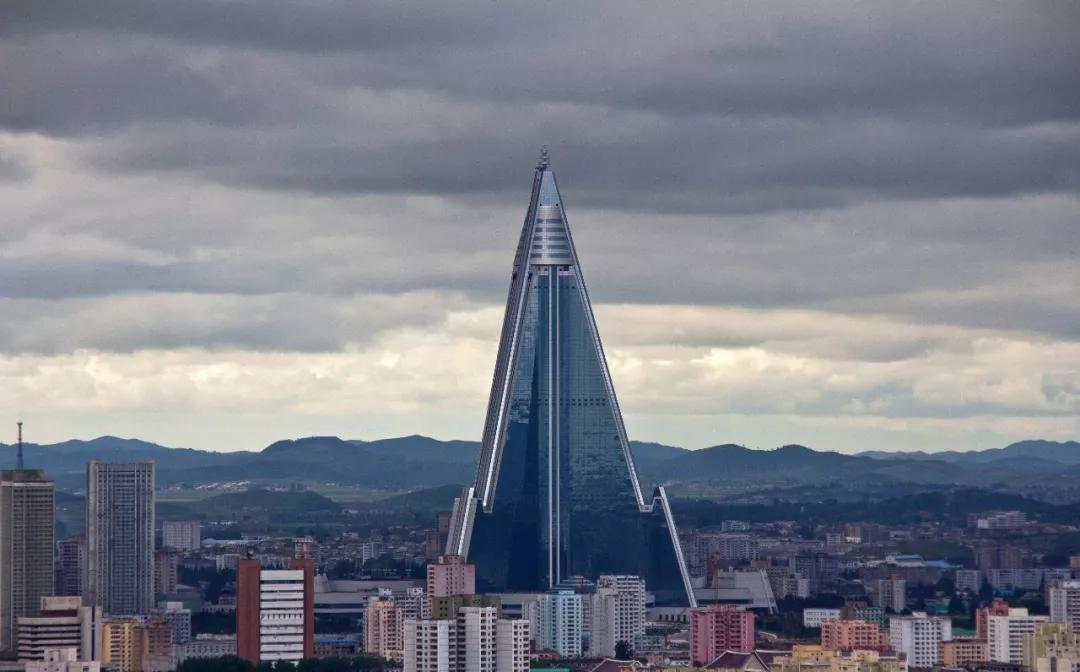 科技感是朝鮮建筑的一大主題。其中最著名的當(dāng)屬這座高105層、330米的柳京飯店,它的外形神似即將飛往太空的航天器。1987年開工,三十多年后的今天卻仍未被啟用,成了目前世界上最高的、也最令朝鮮尷尬的空置建筑。