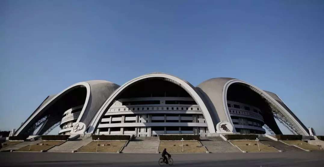 但即使是這座空前龐大的體育館,在獨(dú)具特色的朝鮮建筑群里,也完全不是最受矚目的那一個(gè)。
