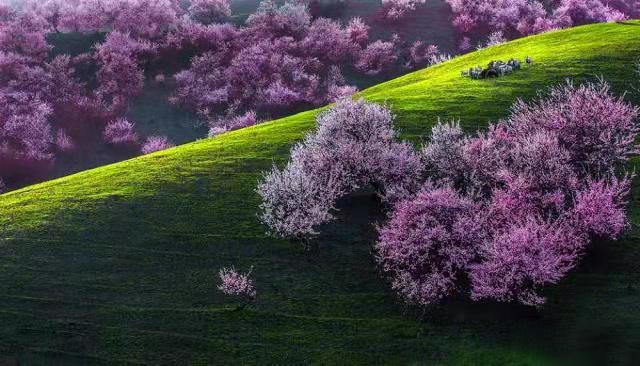 下午在吐爾根杏花溝創(chuàng)作,【杏花溝】位于新疆伊犁新源縣吐爾根鄉(xiāng),這是一片中世紀(jì)遺留最大的原始野杏林,每年4月初新疆吐爾根鄉(xiāng)朝陽(yáng)的山坡上杏花打苞開花,是風(fēng)光絕佳的攝影地,這里有著中國(guó)最集中的野生杏花,難得的是在杏花無規(guī)則的分布在起伏的山坡上,山坡的草兒已經(jīng)發(fā)芽,嫩綠嫩綠的,再添上幾筆散落的馬兒,牧民房,不同時(shí)間的光線會(huì)帶來不一樣的感覺,下午就在吐爾根杏花溝創(chuàng)作到日落。