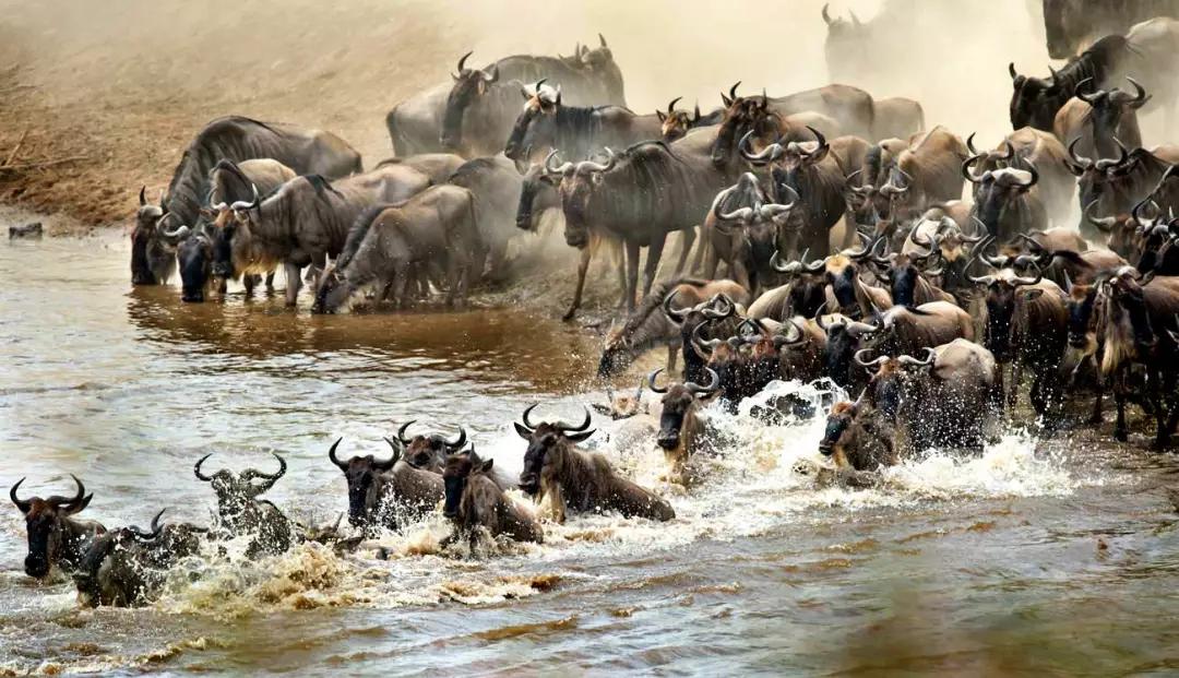 每年馬賽馬拉都會上演世界上最偉大的自然奇觀,那就是舉世聞名的動物大遷徙。從7月到10月,位于北方的馬賽馬拉因連綿的降雨而孕育出新鮮青草地,芬芳的青草氣味,將一百三十萬原居于南面塞倫蓋蒂的牛羚深深吸引,使之匯聚成為動物世界最大的一組移動群體,并且,無懼水里那兇猛的大鱷魚,前樸后繼的,前呼后擁的橫河跨境,進入新天地。他們越過邊坦肯邊境進入開闊的馬賽馬拉, 在廣袤的地平線上如浪潮般一波一波涌進來。如斯景象,也造就了獨步天下,舉世無雙的牛羚(角馬)大遷徙。