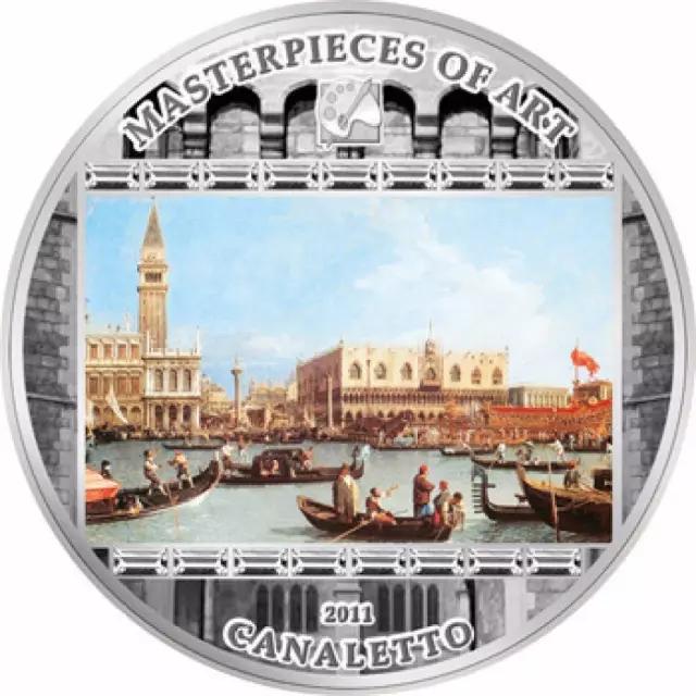2011年,庫(kù)克發(fā)行了世界名畫系列中的《威尼斯大運(yùn)河風(fēng)景》20庫(kù)克元鑲嵌水晶精制彩色紀(jì)念銀幣。銀幣正面圖案取材于意大利畫家卡納萊托的著名風(fēng)景畫《威尼斯大運(yùn)河風(fēng)景》。