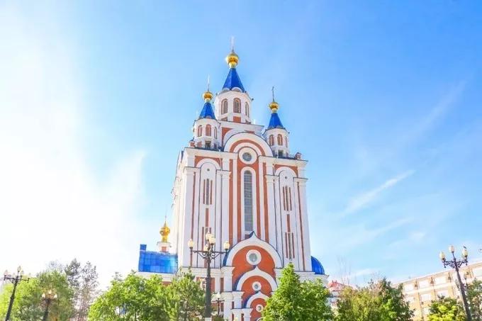 哈巴羅夫斯克最經(jīng)典的建筑莫過于這里最大的東正教教堂——金頂教堂,金光燦燦的洋蔥頭據(jù)說用了3噸多的俄羅斯特產(chǎn)紫金融造而成,可以說是相當奢侈了。
