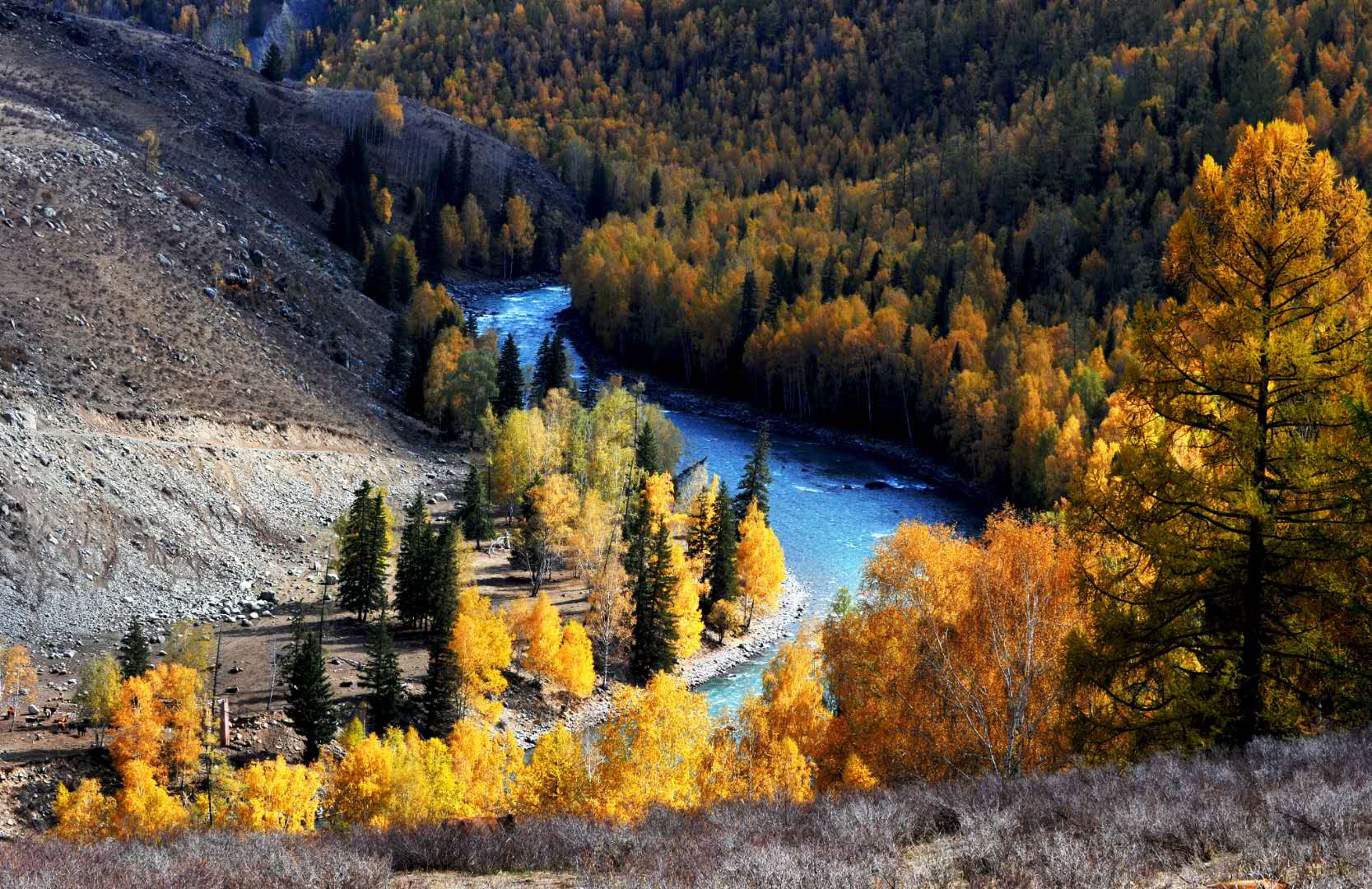 【喀納斯風(fēng)景區(qū)】(含1進(jìn)區(qū)間車,游覽4小時(shí))換乘區(qū)間車進(jìn)入喀納斯國家地質(zhì)公園,沿喀納斯河一路觀光,欣賞西伯利亞落葉松原始森林、白樺林風(fēng)景,欣賞駝?lì)i灣、花楸谷、白樺林、云霧繚繞的神仙灣、神奇的臥龍灣、寧靜的月亮灣、鴨澤湖,湖邊漫步,觀喀納斯艷花彩蝶,湖光山色,眺望四國山-友誼峰,飽覽湖光山色,領(lǐng)略大自然的柔情蜜意,藍(lán)的天,白的云,翠綠的湖水,悠悠的白樺林,真可謂是畫家的地域,攝影師的天堂。
