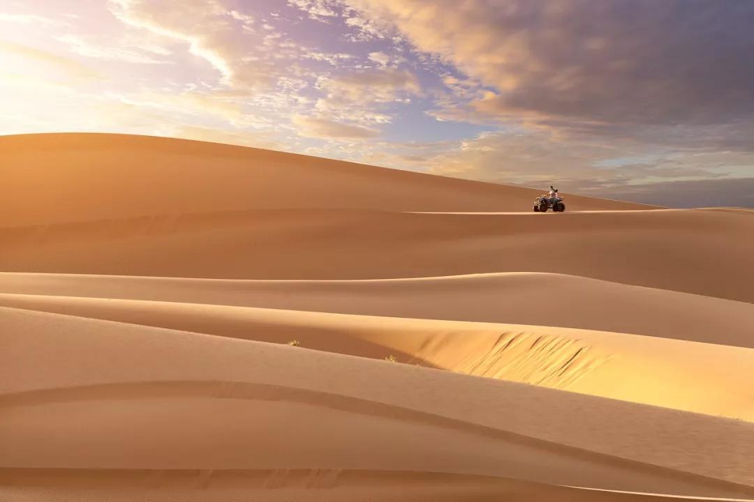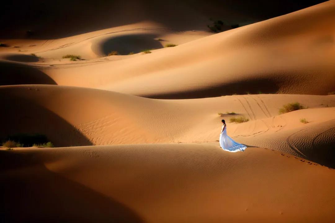 陽(yáng)光灑下,沙漠變成金黃,與落日相依相伴,那一刻遙望遠(yuǎn)方,覺(jué)得自己是如此的渺小,大自然的震撼,是發(fā)自?xún)?nèi)心的贊嘆。