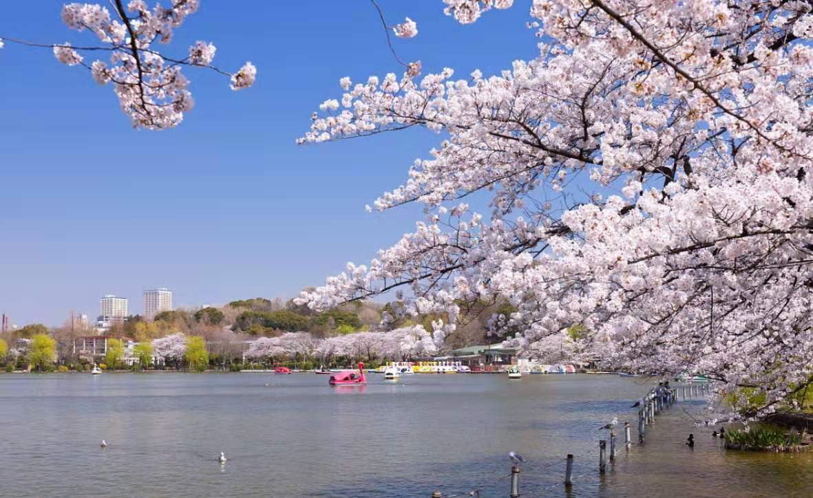 棲息著大量野生的黑天鵝、大雁、鴛鴦、鸕鶿和野鴨。池畔還有一個(gè)水族館,里面有500多種水生動(dòng)物。動(dòng)物園邊上建有牡丹園,種植了70多個(gè)品種3000多株牡丹。上野公園較著名的還在于每年春天盛開的櫻花,去上野賞櫻是東京人的傳統(tǒng)出游項(xiàng)目。