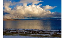 班公湖又稱錯木昂拉紅波,藏語意為“長脖子天鵝”,有世界上海拔最高的鳥島,位于阿里地區(qū)日土縣城西北約12公里處,是中國日土縣與克什米爾交界的國際性湖泊,呈東西走向,長約155公里,南北寬約15公里,最窄處僅五米。湖面海拔4240米,水深57米,流域面積為28714平方公里。
