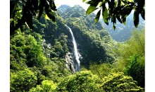 太平山瀑布位于海南通什市東北6公里處的太平山。太平山海拔800多米,山上長滿老樹古藤,巖石疊峰奇秀,山花爛漫,林木蔭翳,曲徑通幽。太平山瀑布奇?zhèn)延^,上細(xì)中粗。雨季,飛瀑傾瀉,落于于丈余巨石上,飛濺起如珠似玉的水花,轟聲如雷,回蕩不息。山下是通什度假村,琉璃紅瓦,環(huán)境優(yōu)雅。
