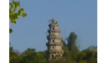 鎮(zhèn)風塔在饒平縣拓林鎮(zhèn)東北l千米的風吹嶺西麓。困拓林地處海濱,屢遭風潮之害,昔人于嶺高面海,常年風聲颯颯的風口處建塔,取鎮(zhèn)風鎮(zhèn)水之意,故名。元至正十三年(1353年)二月建,塔高22米,基圍16米,七層八面,塔身各層用石板鋪蓋,游人可在塔內沿螺旋形石階登上各層,塔廊還裝有石欄桿,每層開設圓窗和拱門,可供游人步出塔廊覽觀山勝。