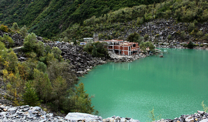 “黃龍旅游股份”開發(fā)的疊溪海子主要景區(qū)有:疊溪地震遺址景觀;疊溪上、下海子;疊溪古城遺址;點將臺;富貴山;偷油洞;玉壘洞;神龜回游等美不勝收的自然景觀。清晨時分,登上高聳于湖畔的碉樓,俯瞰全景,碧玉般的水面灑滿金色的陽光,令人迷醉,幾乎忘記隱藏在寧靜與碧綠中的那次災難,幸好有怪石林,那是地震一番滾落堆積后,在岸坡上留下的奇特景觀,告訴人們這份美麗所付出的代價。