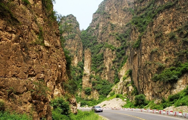 《遼史·地理志》載:“相傳有狐于嶺,食五粒松子,遂成飛狐,故此處地名飛狐口”。這當(dāng)然只是一個傳說。順盤山公路蜿蜒而行,山石聳立,斧劈刀斷一般,四十里飛狐峪幾乎步步都有看點,隨處可見喀斯特地貌造就的怪石異峰。“一炷香”孤立而出,傳說中楊六郎為爭國土箭射山峰留下的“箭眼”依稀可見。明崇禎時大學(xué)士、兵部尚書楊嗣昌在《飛狐口記》中稱“千夫拔劍,露立星攢”、“有如天門”、“回合萬變”。清人吳蘗昌在《北口峪》中稱其山峰造化神奇,“疑神疑鬼,為人力當(dāng)不受”。飛狐峪最寬處只有七八十米,最窄處僅一米左右,頭頂只見一線天,堪稱“一夫當(dāng)關(guān),萬夫莫開”。