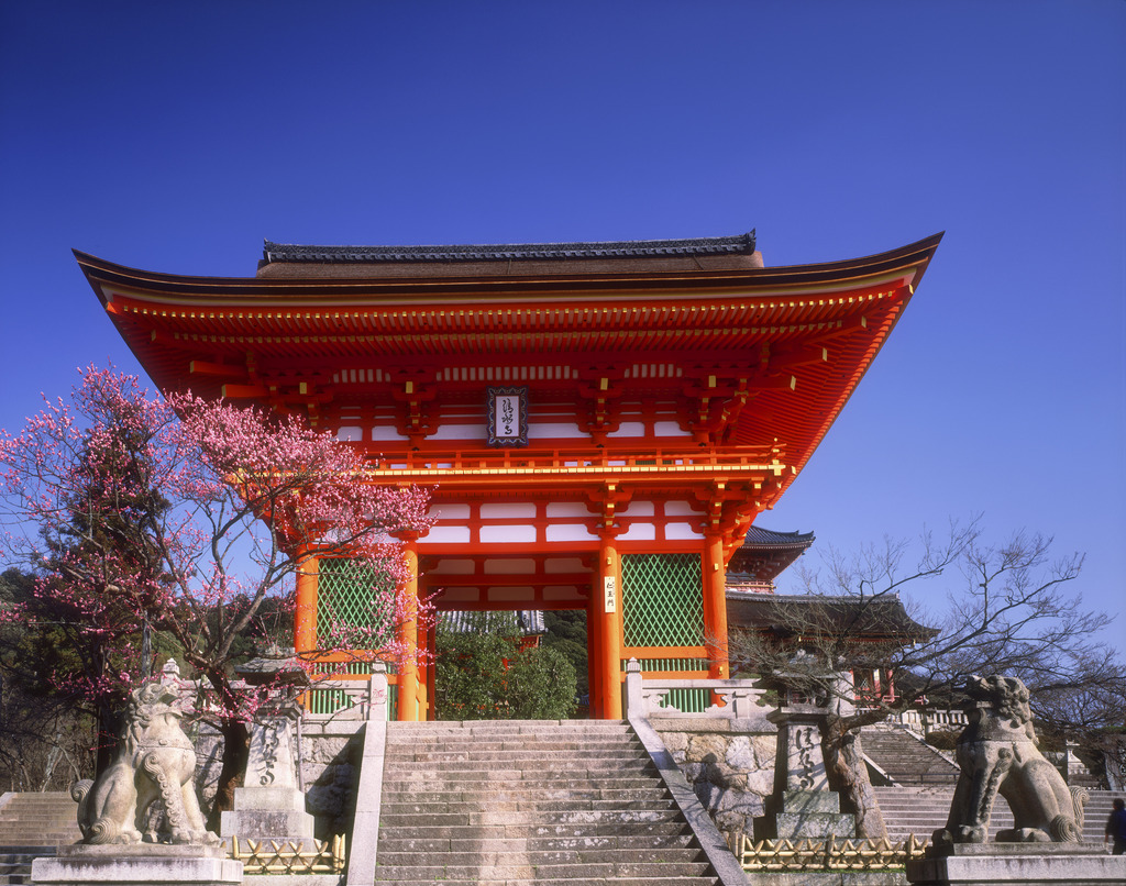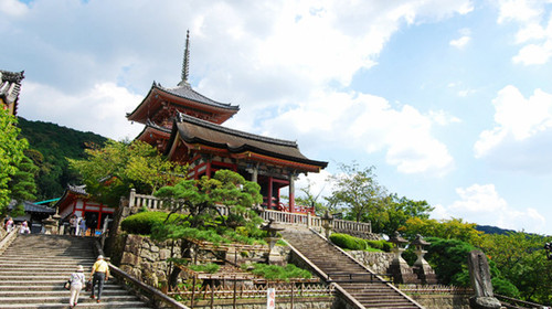 清水寺的山號為音羽山,主要供奉千手觀音。占地面積為13萬平方米,慈恩大師創(chuàng)建。