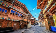 在頗具藏族風(fēng)情的宅子里,展示著木器、唐卡、牦牛角骨的雕刻工藝制作過(guò)程和成品,彰顯著藏民族的智慧和藝術(shù)。那守護(hù)在景區(qū)旁的若干瑪尼石堆,溪邊永不停歇的轉(zhuǎn)經(jīng)桶,承載著藏族人民的信仰和寄托,此刻,濃郁的宗教氛圍本身就是一道人文景觀(guān).