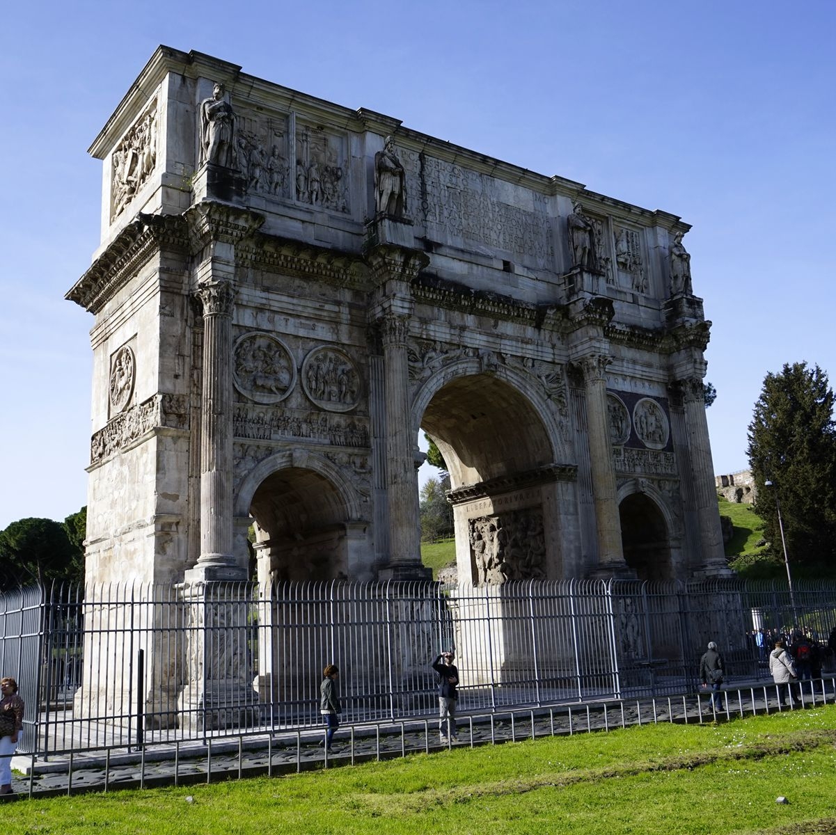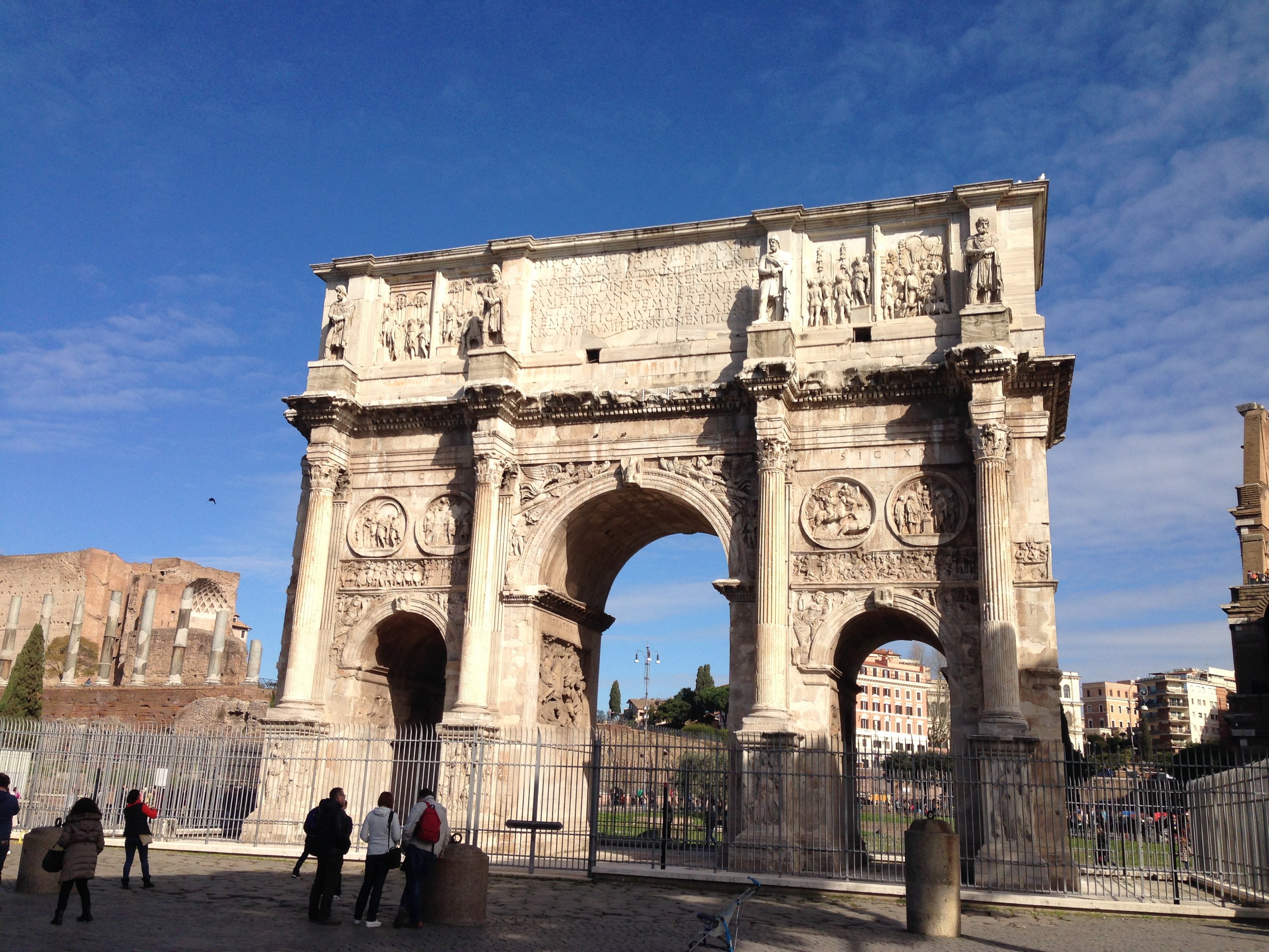 君士坦丁凱旋門(mén),建于公元315年,是羅馬城現(xiàn)存的三座凱旋門(mén)中年代最晚的一座。