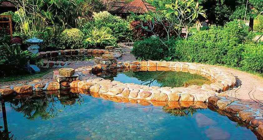 房、娛樂、會務、健身于一體的健康、休閑、度假、旅游樂園。度假村傍山依水,環(huán)境幽雅,景色怡人。江埡溫泉水質(zhì)清澈碧透,水溫常年在54度左右,溫泉水富含對人體有益的多種礦物質(zhì)元素。泉水伴著春夏秋冬、日月星辰不停不歇地從地心涌出。江埡溫泉主要硬件特色是高標準的自然園林式露天溫泉與室內(nèi)溫泉,建有同心池、六福湯、瀑布溫泉、石板溫泉、椰奶溫泉、花草溫泉、咖啡溫泉、紅酒溫泉等,布局體現(xiàn)出鄉(xiāng)土格調(diào),鵝卵石、青石板鋪地, 假山瀑布,小橋流水,20余種各賦特色、各具功能的溫泉池鑲嵌其中, 一派恬淡寧靜的詩情畫意。