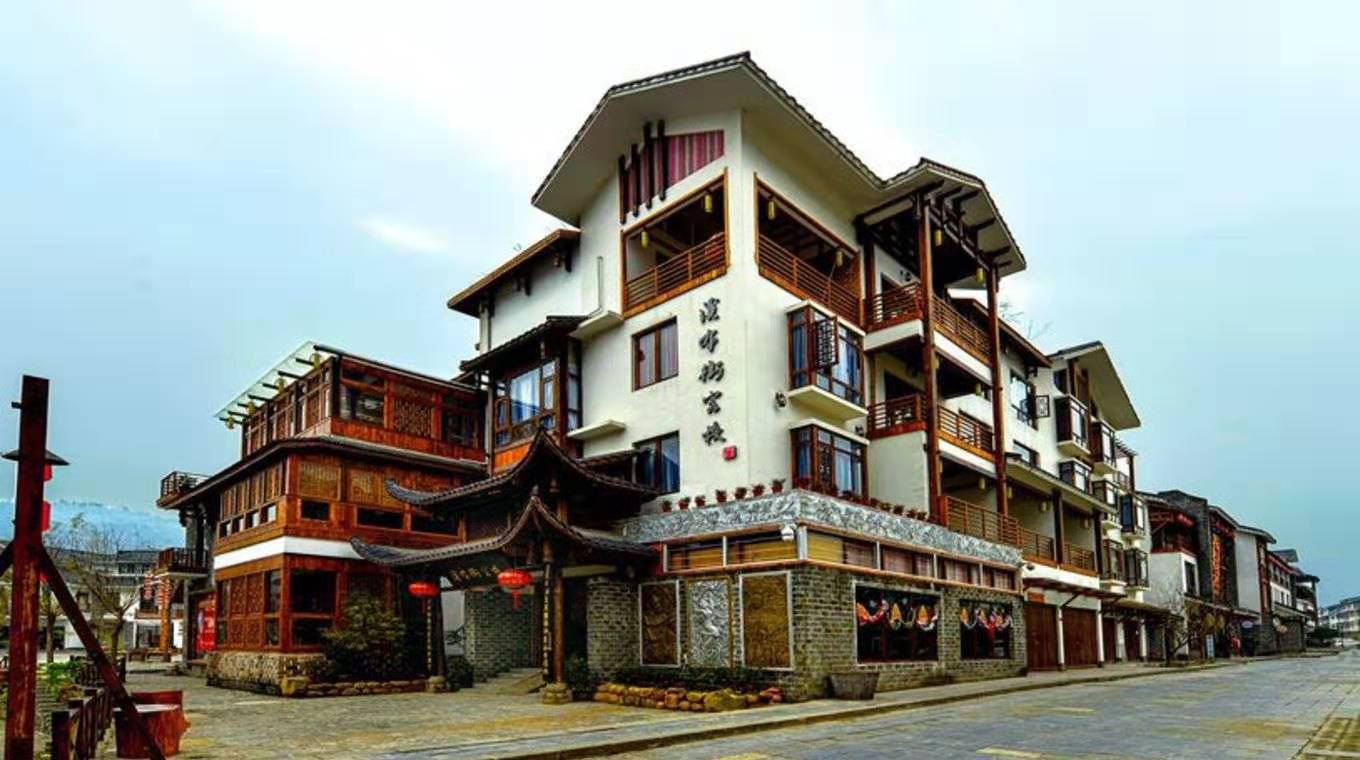 休閑客棧:客棧位于靠武陵大道,以土家族吊腳樓形式建造,每一棟客棧都帶有庭院,高4層,客棧總面積約為9000平米,面積區(qū)間800—1200平米,客棧房間設(shè)計方正,采光好,客棧內(nèi)配套設(shè)施全,如布草間,廚房、餐廳等。