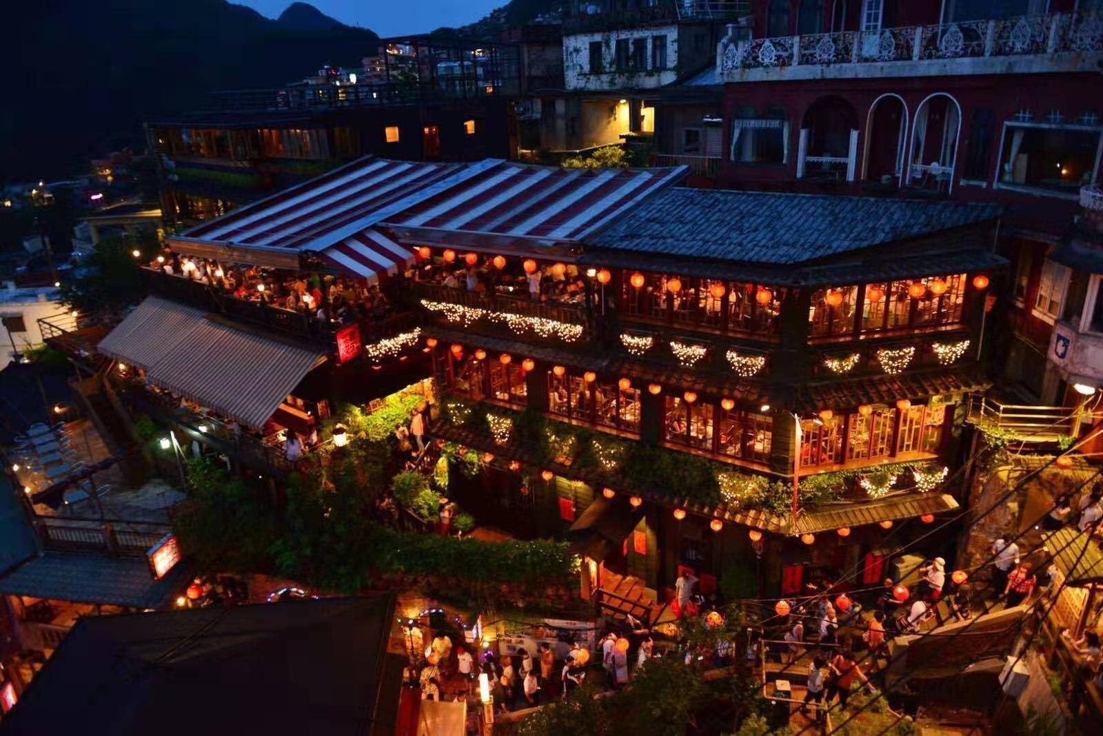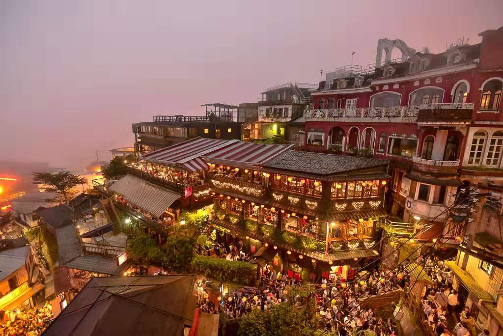 九份商圈主要范圍以聚集在基山街、豎崎路及輕便路等街道為主。人文歷史景觀如臺陽礦業(yè)事務所、彭園、五番坑口、升平戲院、九份金礦博物館等,而位于九份上,往下可俯視基隆嶼、八斗子、番仔澳、鼻頭角等地的海景,往上可眺望雞籠山景。九份日夜氛圍不同,于白日可俯瞰海景,感受九份老街旺盛人氣,于夜晚一切歸于寧靜,靜靜坐在茶樓間,細品九份寧靜氛圍,往外看,僅剩盞盞漁火于海面上。