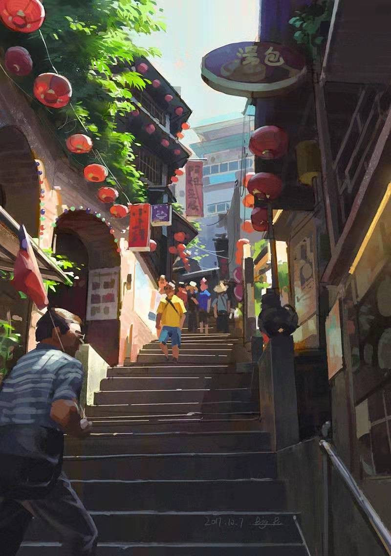 九份的房屋順應山勢,鱗次櫛比地蓋在一起,狹窄的街道和陡直的石階,高高低低,彎彎曲曲,是九份最具特色的景觀,行走時,你感覺像是走在住家的屋頂上。鄉(xiāng)土小吃芋仔番薯、九份第一家茶坊及九份文史工作室皆位于此路上。然隨著觀光業(yè)的發(fā)展,因文明的沖擊,九份已逐漸步上現(xiàn)代化的腳步。石頭鋪就的街道兩旁全是商鋪,街上的人摩肩接踵,但卻絕無大聲叫賣和喧鬧的音樂。人們慢慢地走,細細地看,喜歡什么就停下來問問價錢,盡管人多,卻沒有喧囂嘈雜之聲,讓人感覺非常舒服。