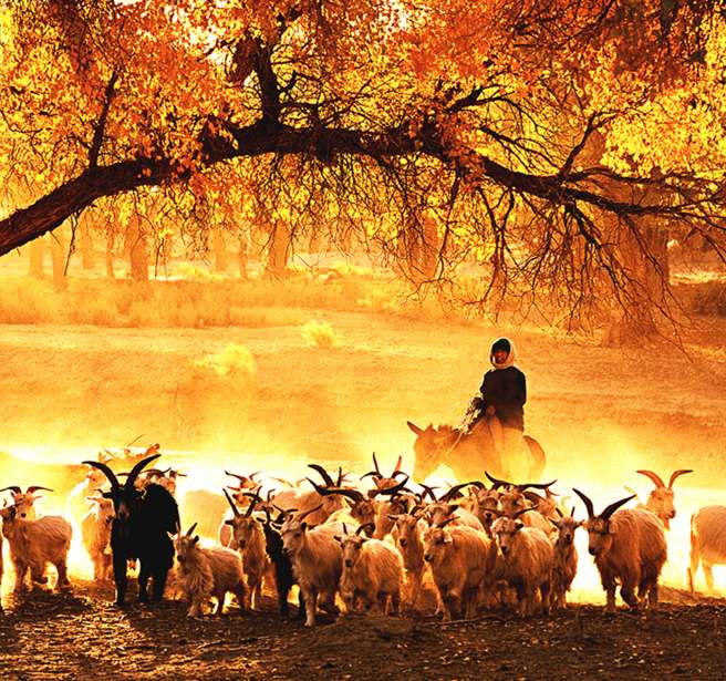 化的植物,大多是野生,被人們譽為“沙漠勇士”。胡楊林是一種神奇的群體,它們耐寒、耐熱、耐堿、耐澇、耐干旱。胡楊生長期漫長,由于風沙和干旱的影響,很多胡楊樹造型奇特、詭異,是一種神奇的自然景觀和獨特的人文景觀,堪稱大漠中的一顆綠色明珠,所以胡楊樹有“活三千年不死,死三千年不倒,倒三千年不朽”之稱。版權(quán)所有山東聊城聊之旅國際旅行社有限公司,轉(zhuǎn)載必究!每年9、10月,當?shù)谝粓銮锼笃暮鷹盍钟删G變黃,一眼望去,陽光下金色的樹葉趁著湛藍的天空于風中婆娑起舞,那種強烈的反差,鮮明的影調(diào),亮麗的色彩,足以令任何語言文字顯得蒼白無力。胡楊是中亞地區(qū)唯一適合生長的喬木,它是大自然漫長進化過程中幸存下來的寶貴物種。它嫵媚的風姿、倔強的性格、多舛的命運激發(fā)人類太多的詩情與哲思。古往今來,胡楊已經(jīng)成為一種精神而被人們所膜拜。