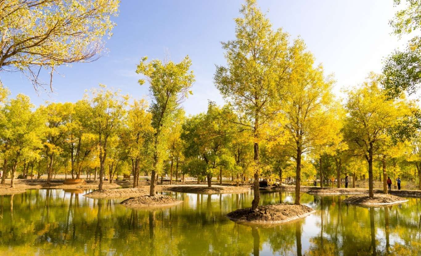 周邊分布大面積的沙棗樹、白楊、紅柳等大西北特有的樹種,該胡楊林分布密集,長勢良好,規(guī)模居全省之冠,極具旅游開發(fā)價值,不久的將來這里便會更加為人們所熟知。金秋十月的胡楊,綠色的樹葉有的已經(jīng)變黃,已經(jīng)變黃的胡楊樹,在湛藍的天空下,在荒蕪的沙漠中如陽光一般明媚燦爛。