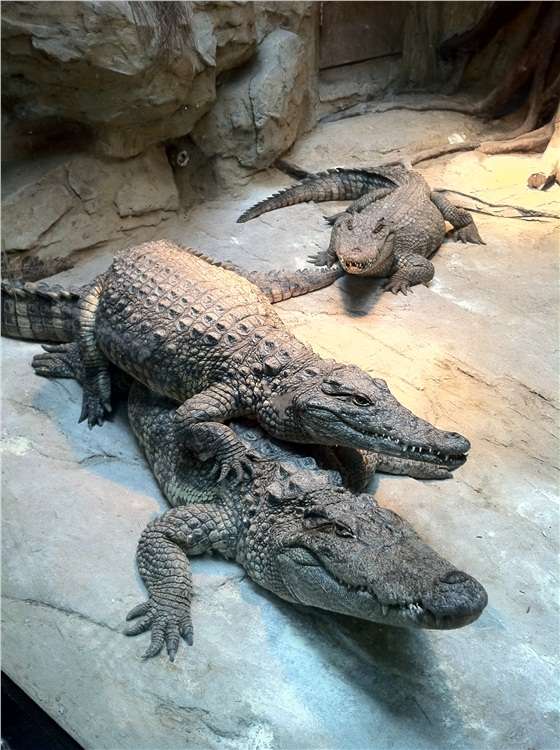 鱷魚是現(xiàn)存的最大的爬行動物,它與恐龍是同時代的,不過恐龍已成為過去,鱷魚能夠存活下來也證明了它頑強(qiáng)的生命力。鱷魚喜歡溫暖,喜歡在陽光下漂浮在水面一動不動,它獨有的偽裝術(shù)往往讓游客迷糊了雙眼。當(dāng)飼養(yǎng)員將它們喜歡的魚用竹竿勾住伸向它們時,鱷魚們就卸下偽裝表現(xiàn)出該有的活力,讓游客們大飽眼福。