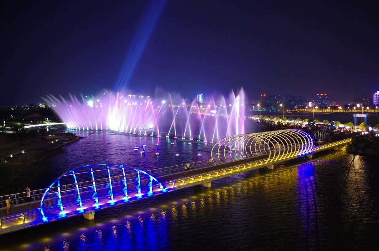 長沙梅溪湖音樂噴泉是國內大型音樂噴泉之一,同時,長沙梅溪湖音樂噴泉也是亞洲最長音樂噴泉。2013年2月長沙梅溪湖音樂噴泉開始投入使用。梅溪湖音樂噴泉位于梅溪湖國際新城節(jié)慶島與文化藝術中心之間的水面上,金茂府正對面,長460米,高30米,通過一條弧線貫穿4個圓形組團,共采用200個三維噴頭、4個大型激光、1000盞LED燈。