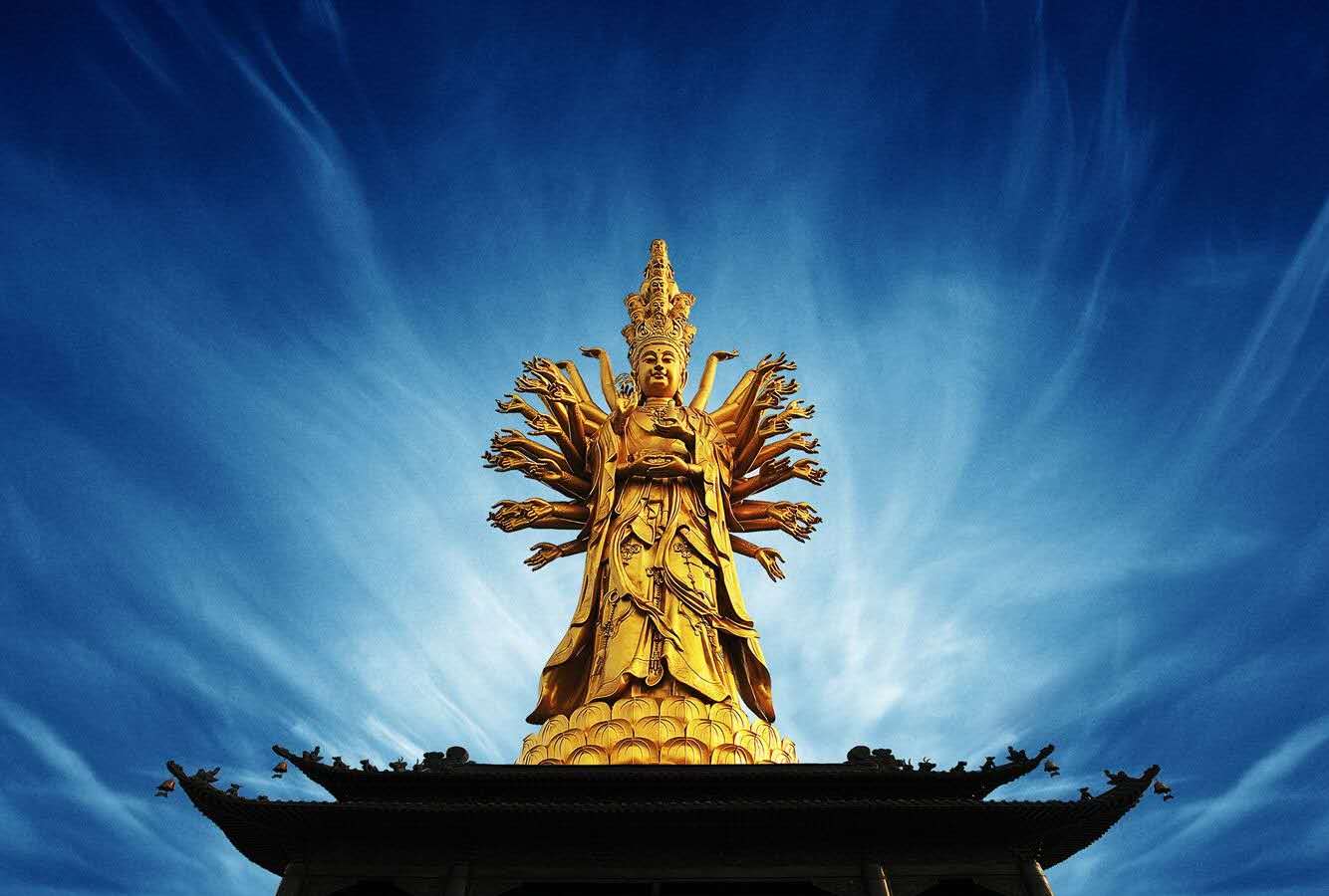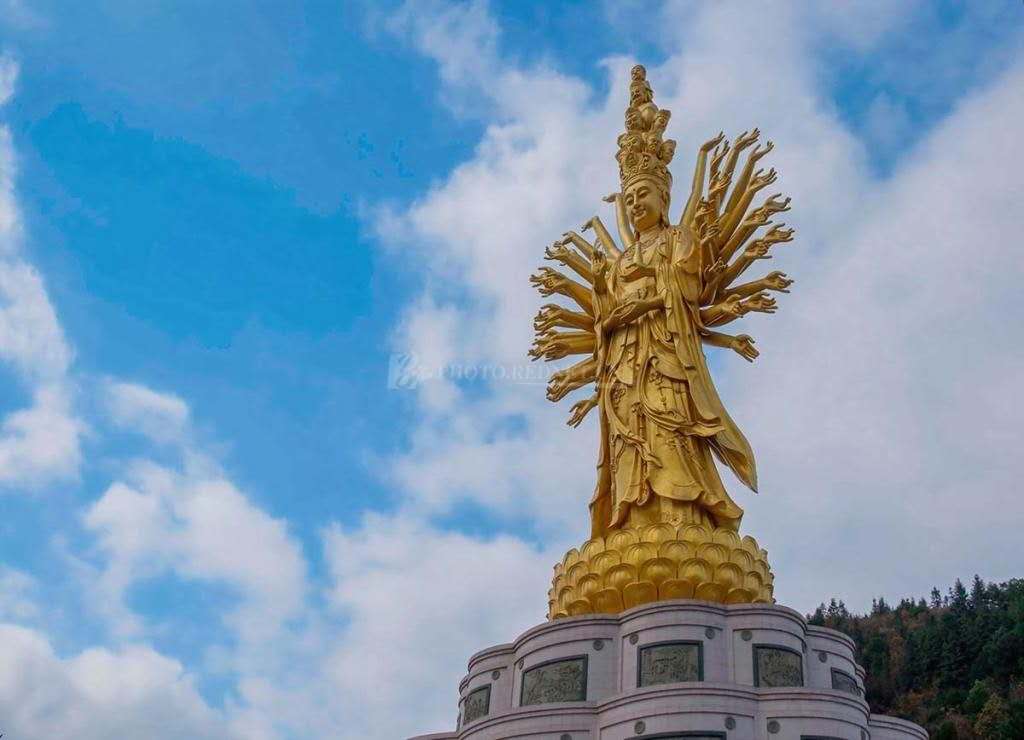 位于密印寺的后面,有高達(dá)99.19米的千手觀音, 雄偉壯觀,人在其下,如同觀音踏蓮駕云而來(lái)。萬(wàn)佛靈山公園拜道呈菩提樹(shù)狀,共有吉祥、如意、蓮生、平安四大廣場(chǎng),共有臺(tái)階619級(jí),象征觀世音菩薩誕辰之日。主佛像周?chē)€有33尊觀音化身像,圍繞主佛像。