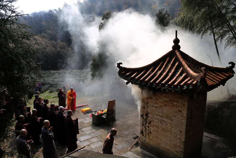不久,法海禪師行單上的苦行生活圓滿結(jié)束,開(kāi)始三年的閉關(guān)修行。各類(lèi)勞作外緣均通身放下,一心參禪。三年圓滿時(shí),不開(kāi)關(guān)門(mén),師父靈佑禪師親自到關(guān)門(mén)外直呼“法海”之名。禪師在關(guān)中應(yīng)聲而出,關(guān)房門(mén)窗毫無(wú)損壞,是圓滿得道的標(biāo)志。一時(shí)間,合寺內(nèi)外僧俗大眾皆來(lái)親近問(wèn)道,為避俗諱,乃受師命,游歷江西廬山等地,終至江蘇鎮(zhèn)江氏俘山的一片荒林中駐錫禪修。時(shí)隔不久,由當(dāng)?shù)匦疟娬f(shuō)明,乃知氏俘山中自己的駐地于東晉時(shí)曾建過(guò)名為澤心寺的道場(chǎng)。在密林的荒煙蔓草間,禪師居然尋獲到已被毀壞的殘佛,于是,法海禪師燃燒一節(jié)指,誓愿重修道場(chǎng),為眾生樹(shù)立伽藍(lán)。于是開(kāi)山挖田,刻苦勞作,漸漸贏得當(dāng)?shù)孛癖娭С郑_(kāi)始建設(shè)寺院。