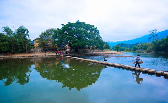 歷史悠久的古老村落,村中幽長(zhǎng)古道、百年老榕、神奇土樓,還有那靈山碧水,無不給人以超然的感覺。南靖縣長(zhǎng)教風(fēng)景區(qū)擁有世界文化遺產(chǎn)和貴樓、懷遠(yuǎn)樓、省內(nèi)最高最大最為集中的千年古榕樹群、一條百年老街、千年古道。溪岸邊,由13棵百年、千年老榕組成的榕樹群蔚為壯觀,其中一棵老榕樹樹冠覆蓋面積1933平方米,樹丫長(zhǎng)達(dá)30多米,樹干底端要10多個(gè)大人才能合抱,是一棵目前我省已發(fā)現(xiàn)的最大的榕樹。榕樹下一條被踩磨得非常光滑的鵝卵石古道伸向遠(yuǎn)方,據(jù)考證是長(zhǎng)汀府(龍巖市)通往漳州府(漳州市)的必經(jīng)之路。古道旁,有一排兩層老式磚木結(jié)構(gòu)房屋,那就是長(zhǎng)教已有數(shù)百年歷史的老街市。這些老商鋪大多還保留著木板代墻的特點(diǎn)。