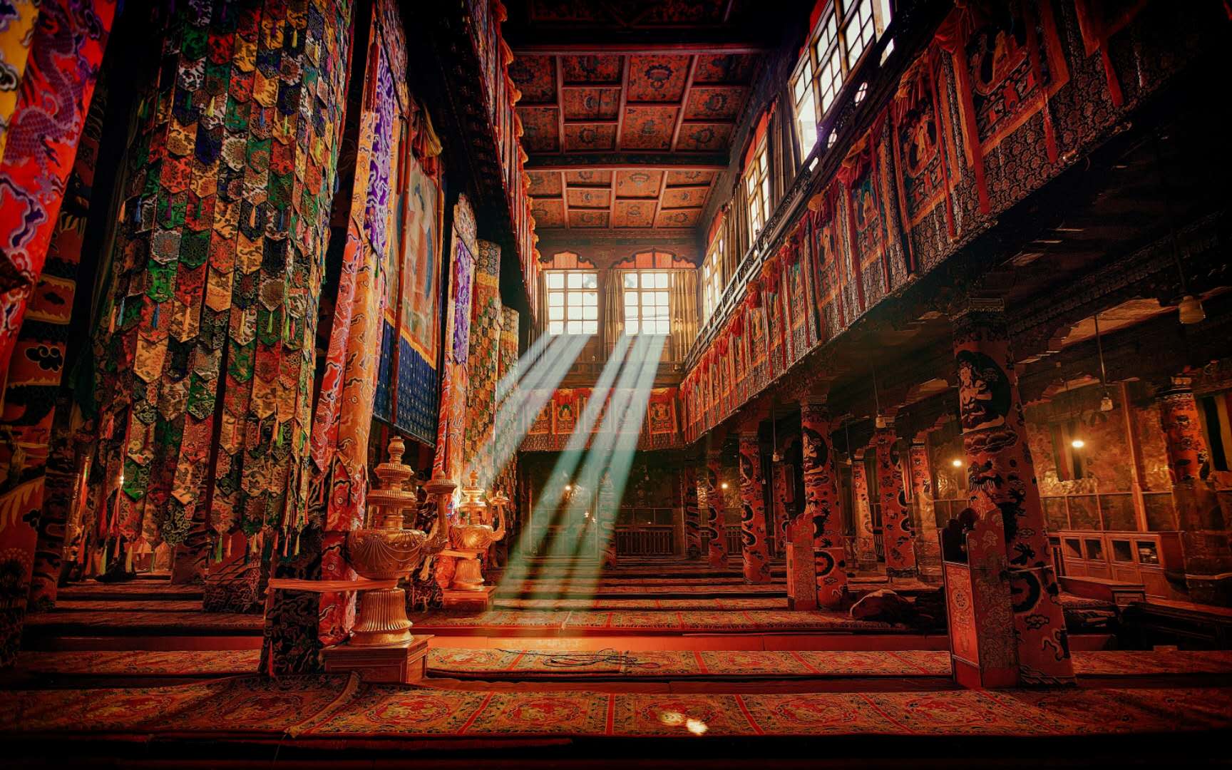 扎基寺門洞的墻上,畫著有名的“蒙人馭虎”圖,表明這是一座格魯派寺廟,聽人介紹,這座寺廟是色拉寺的屬寺。版權所有山東聊城聊之旅國際旅行社有限公司,轉載必究!寺門外的走廊上的壁畫畫有四種動物:大象身上坐著猴子,猴子身上坐著兔子,兔子身上坐著鳥兒,神態(tài)安祥,和睦共處,寓意著大自然的和諧包容。